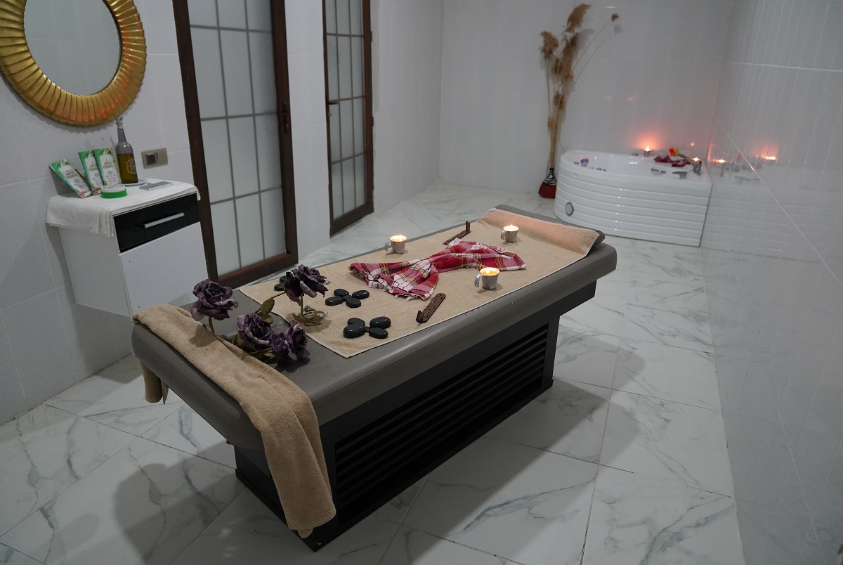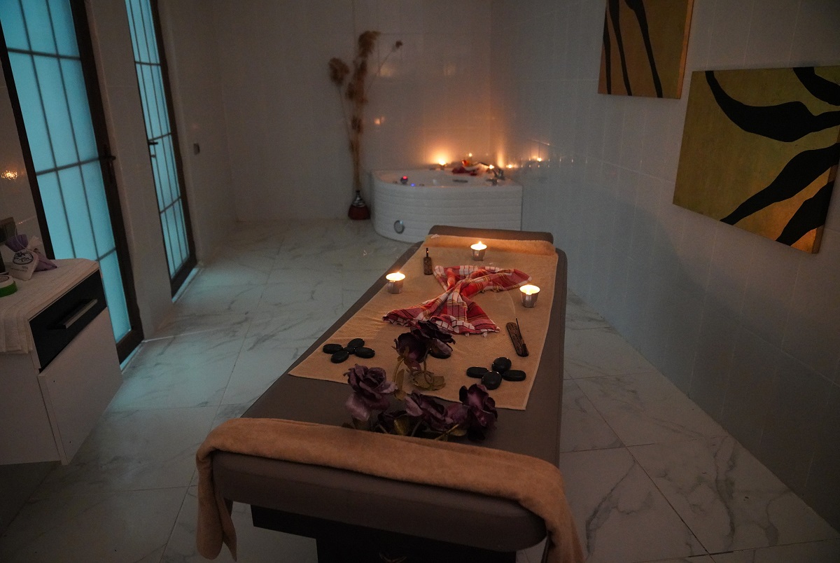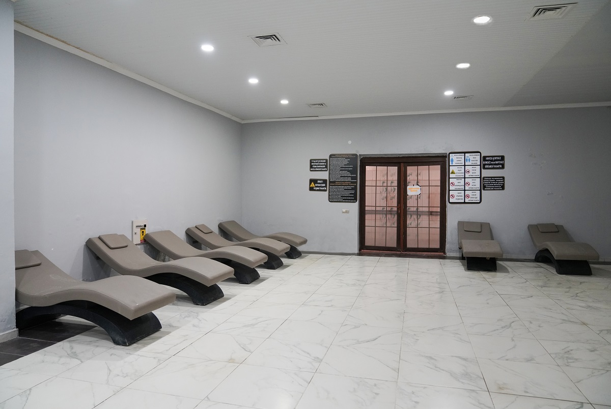 . : Tesiste konaklayan misafirler kaldıkları binadan dışarıya çıkarak Havuz, Spa ve Restaurant & Cafe bölümüne geçmektedir. Havuz - Spa - Restaurant - Cafe kaldıkları binaya çok yakın mesafededir. Kış aylarında Havuz & Spa bölümüne geçmek için tünel kullanılm